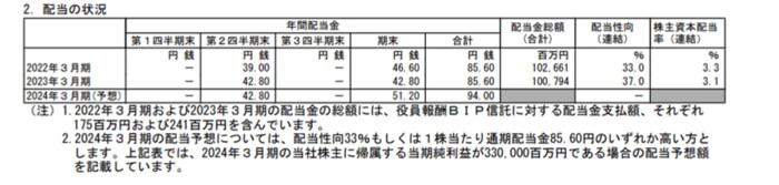 - 2023年3月期・期末配当:42.8円