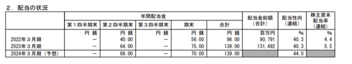 コマツの株式を1年前に買い、持ち続けたとすると、「2023年3月期の中間配当と2023年3月期期末配当」の計2回を受け取ることができます。
