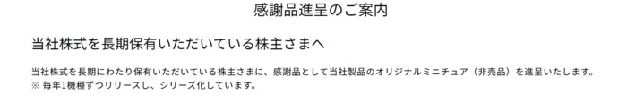 コマツは決算期(2023年3月期)現在、300株以上を3年以上保有している株主に向けて、感謝品を提供しています。
