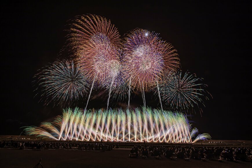 その他にも、日本の有名花火師30社がそれぞれの想いを込めて打ち上げる「一尺玉競演会」、幅1kmに渡って打ち上がる圧巻の「大スターマイン」など、見どころも盛りだくさんです。
