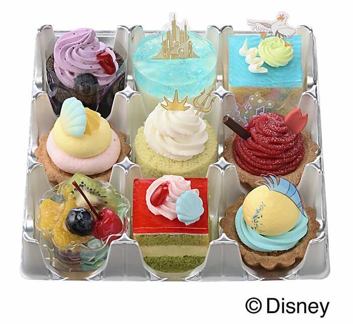 コージーコーナーは、現在、全国の生ケーキ取扱店にてプチケーキアソート『<リトル・マーメイド>コレクション(9個入)』の販売しています。
