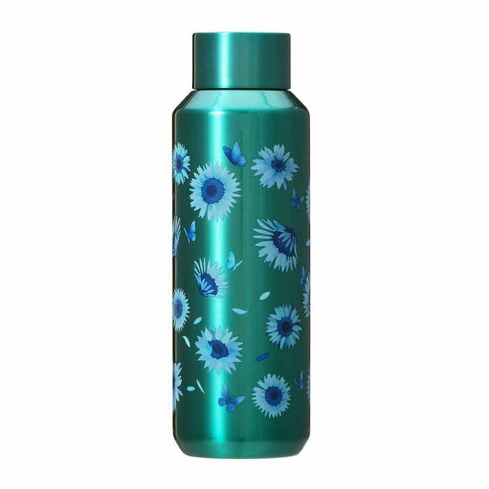 光沢のあるブルーのボディに、夏を感じるフラワーを大胆に描いたステンレスボトルです。真空二重構造ステンレスで保温・保冷性に優れています。