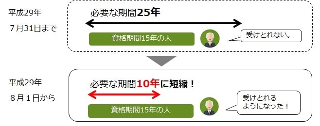 なお、かつては25年必要でしたが、2017年8月1日から10年に短縮されました。
