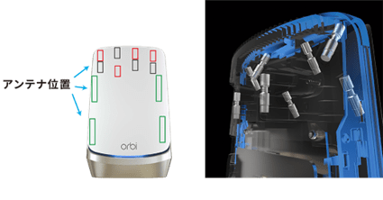 さらにOrbi WiFi 6Eはこれまでの2.4GHz、5GHzとは違う6GHz帯の通信にも対応しています。高速通信が可能な5GHz帯ですが、実は航空/気象レーダー波を感知すると干渉を回避する仕組みが働き、不安定になっていました。6GHz帯なら完全にインターネット用に確保された帯域なので干渉を避けられると同時に帯域幅も広く高速通信ができます。