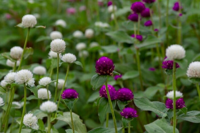 少し変わった寄せ植えを作るなら、センニチコウをメインにした寄せ植えはいかがでしょうか。センニチコウはピンクやレッド、ホワイトの丸い花が可愛らしい植物。新しい品種も登場しており、オシャレな雰囲気が楽しめます。