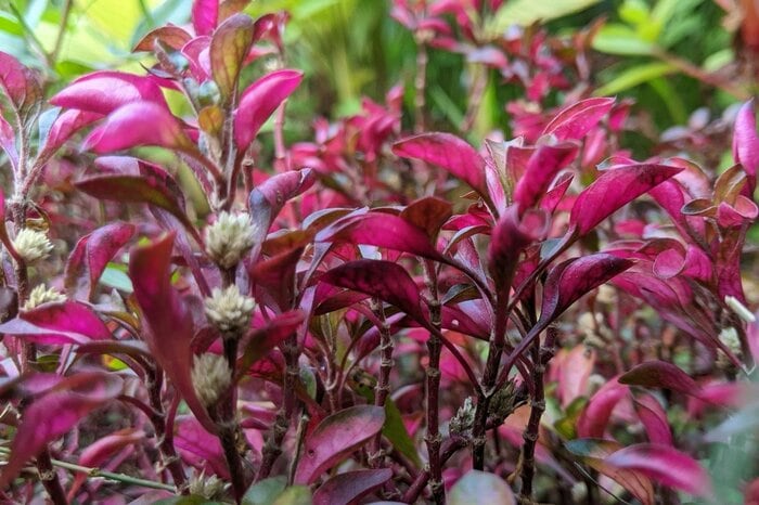 ピンクのセンニチコウを選ぶときは、組み合わせるリーフプランツも同じ系統色を合わせてみましょう。カラーリーフプランツのアルテルナンテラは銅葉の品種がおすすめです。