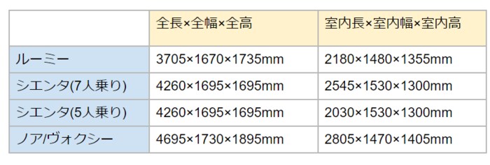 車中泊におすすめのトヨタ車 3選サイズ比較表