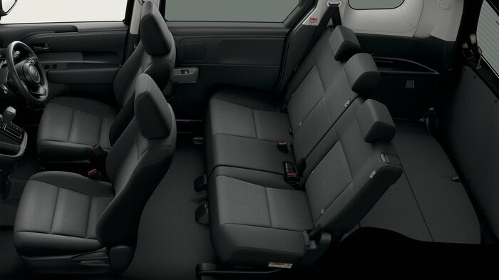 ルーミーのシートアレンジは室内長と高い全高をフルに活かしています。後席をダイブイン機構で収納すれば自転車も積め、リアシートが240mmもスライドできるので荷物量によって調節できます。