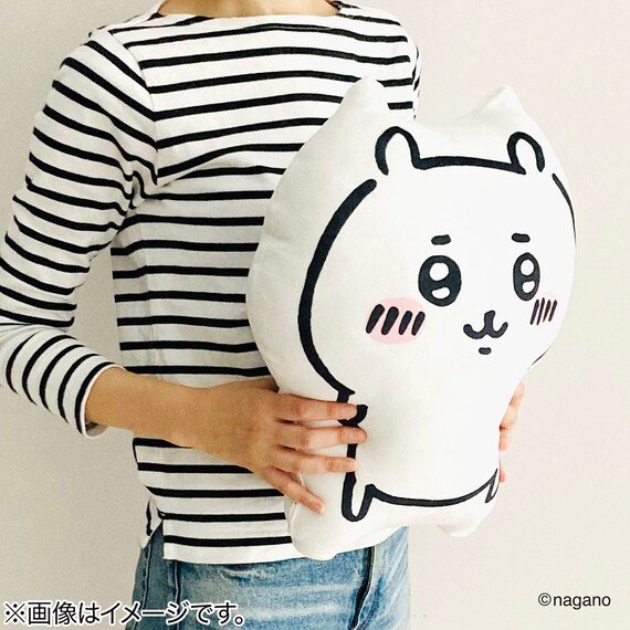 ぎゅっと抱きしめたくなるもちもち感触の抱き枕です。ちいかわの全身を型どったクッションです。