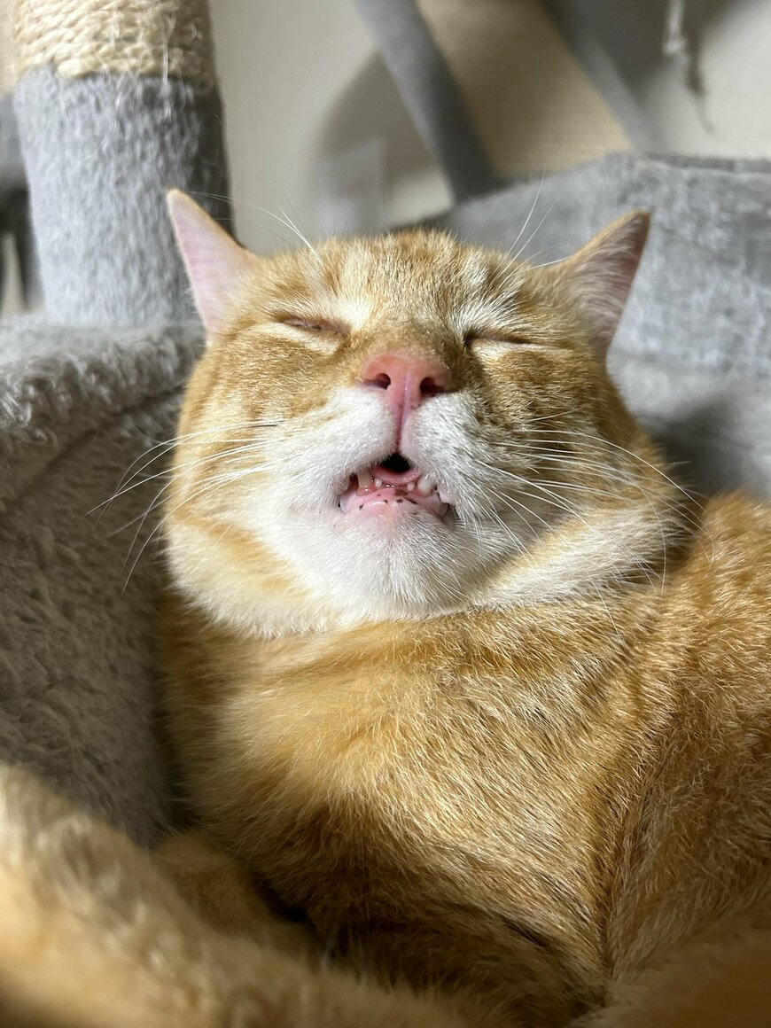 今では3匹の猫の中でも、もう野生など一切ない1番の甘えん坊です。誰かが居ないと何度も鳴き、後追いちゃんでもあります。また、ときにはノーモーションからの甘噛みで、家のどこかで悲鳴が……!