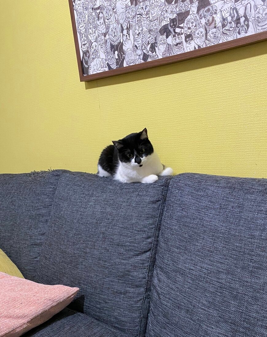 ソファの背もたれにぴったりと座っているかと思いきや……?さりげなく足を落とした可愛い格好をする、猫ちゃんの一コマがTwitterで注目を集めています。