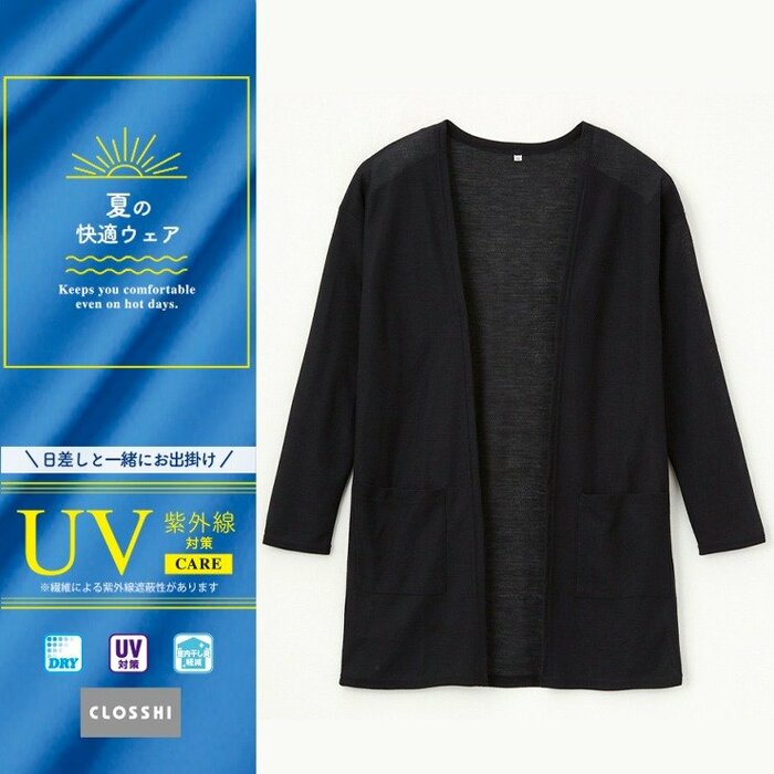 UVカット加工だけでなく、吸汗速乾や部屋干し臭防止機能がついています。お手入れがしやすいカーディガンなのでデイリーに活用することもできそうです。