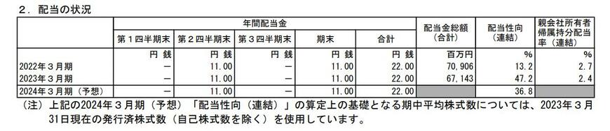 - 2023年3月期・期末配当:11円