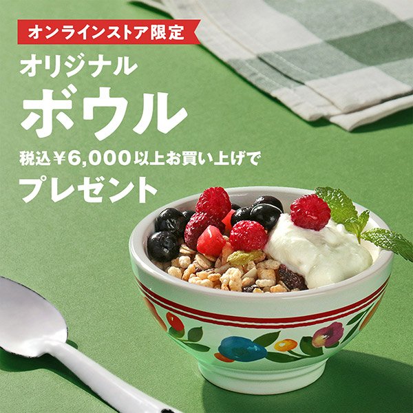 ・オンラインストアで商品代金の合計額が6000円(税込)以上のご注文1件につき、オリジナルボウルを1点プレゼント。実店舗では実施しておりません。