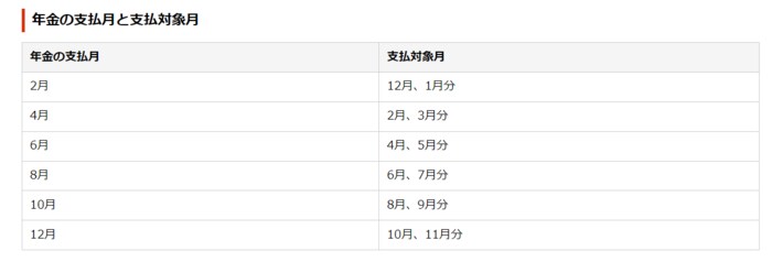 年金は1年に6回、「2月、4月、6月、8月、10月、12月」の15日に支払われます。