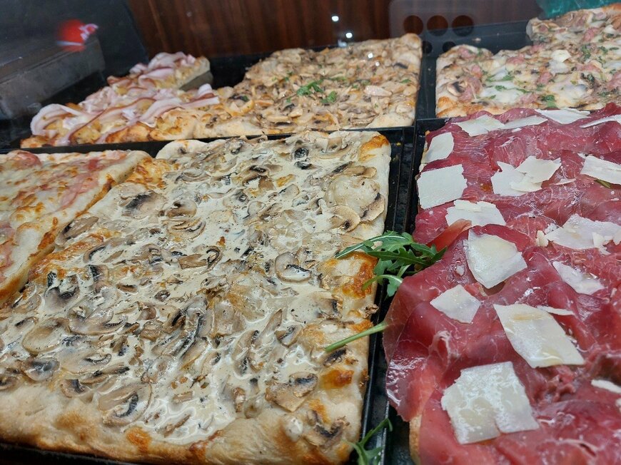 丸い大きなピッツァを食べきれない場合や、小腹が空いたときのおやつとして、ローマの切り売りピッツァはローマっ子の生活に根づいているのです。