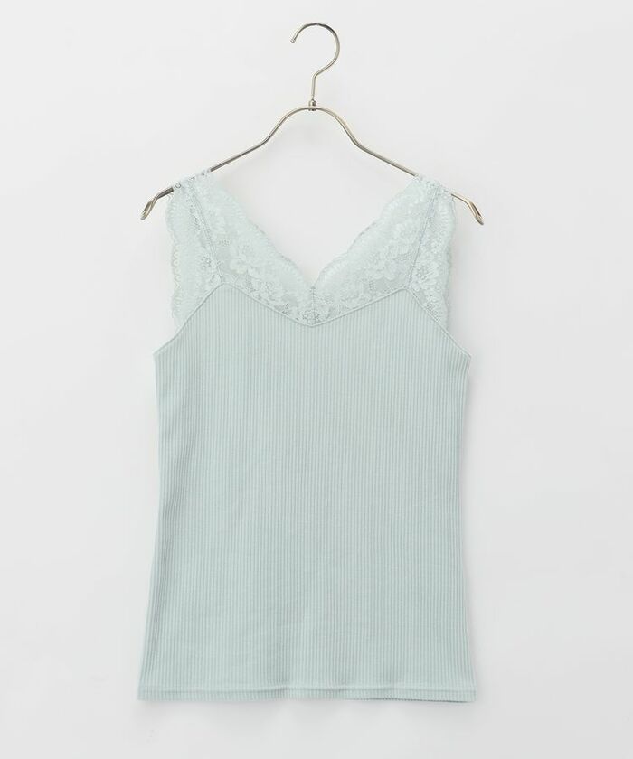 レースタンクトップをインナーにして、Vネックの襟元からチラ見せさせても素敵でしょう。
