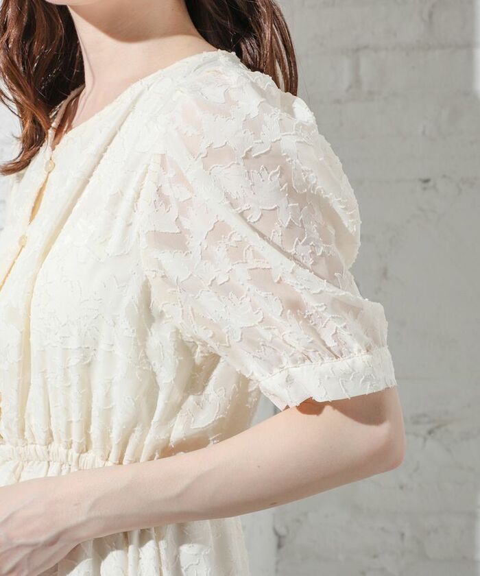 袖は「ボリューム袖」仕様となっています。半袖のワンピースながら、二の腕が目立ちにくいのが嬉しいです。