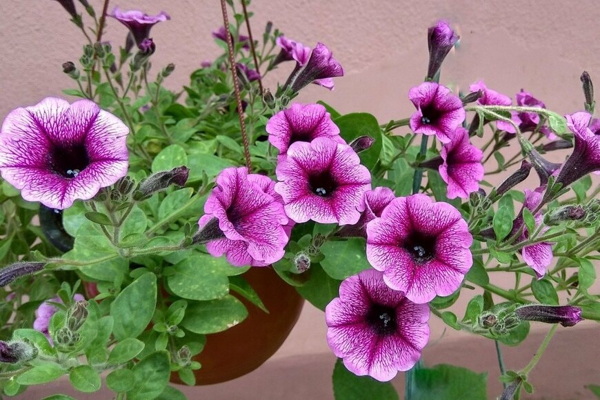 エレガントな大輪の花を咲かせるペチュニア。原色系やパステルカラー、スタイリッシュなニュアンスカラーや水しぶき模様のスプラッシュ系など、鮮やかな花色で夏の庭を彩ってくれます。