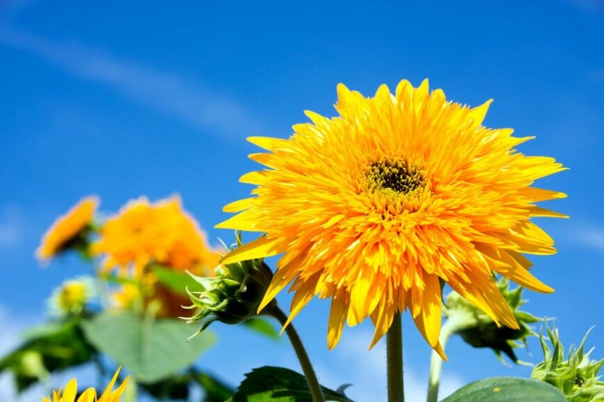 さらに豪華な八重咲きやコンパクトなミニヒマワリなど品種も豊富。花が終わったあとは種を採取し、来年の植え付けに備えましょう。※参考価格:200~500円前後(3号ポット苗)