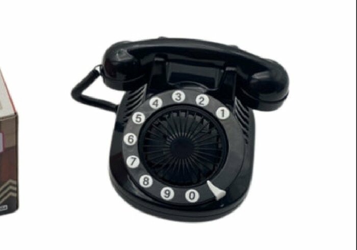 こちらは昭和レトロな「黒電話型扇風機」です。ダイヤル部分に羽がついています。