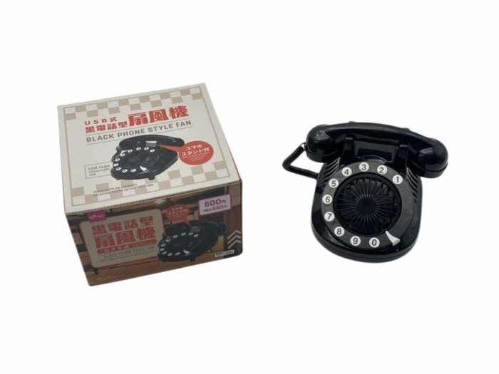 【ダイソー】昭和レトロな黒電話デザイン! 飾っても楽しめそうなUSB式扇風機