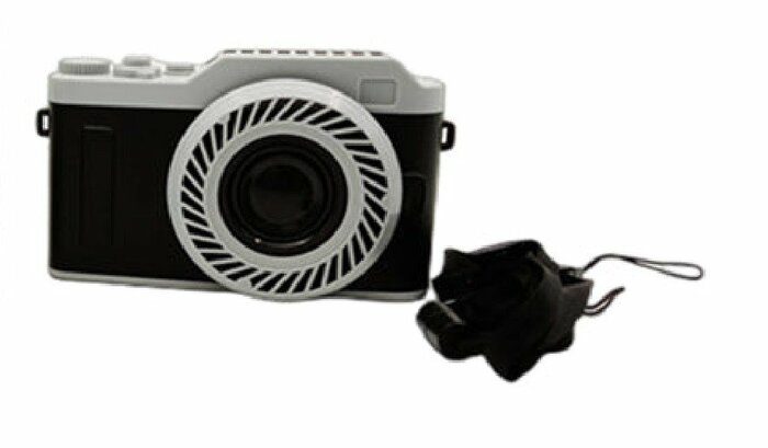 こちらは平成レトロな「使い捨てカメラ」のようなデザインのミニ扇風機です。平成ポップスタイルのコスプレ小物としても活用できそうです。