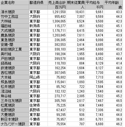 今回は、ゼネコン関連企業の直近の決算資料などをもとに、企業ごとの年収を比較しました。