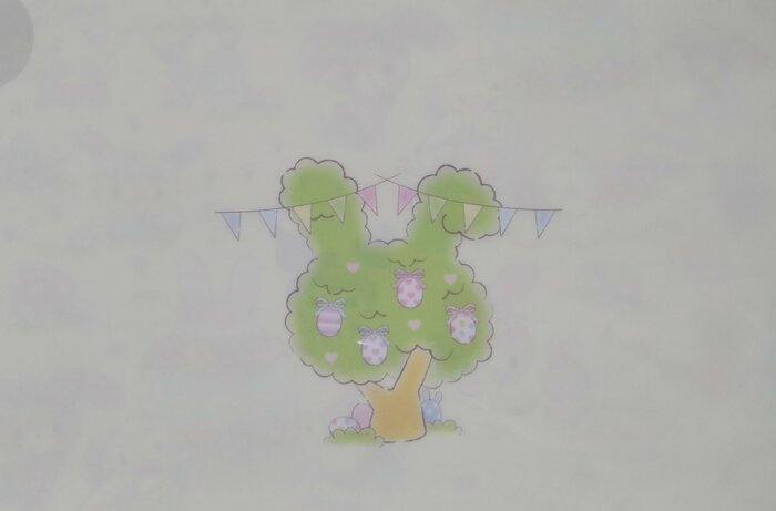 両面デザインです。裏面はうさぎの形の木に、イースターの卵がぶら下がったデザインとなっています。