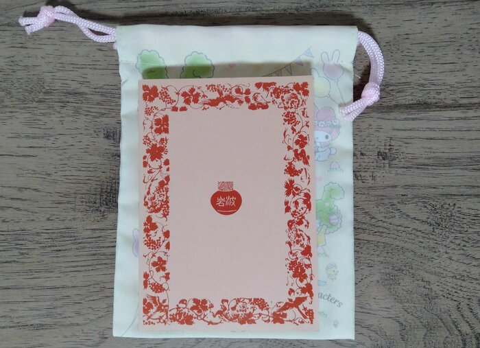 こちらはミニ巾着です。ピンク色の紐もかわいらしいアイテムとなっています。お子さんの給食袋にもちょうどいいアイテムです。