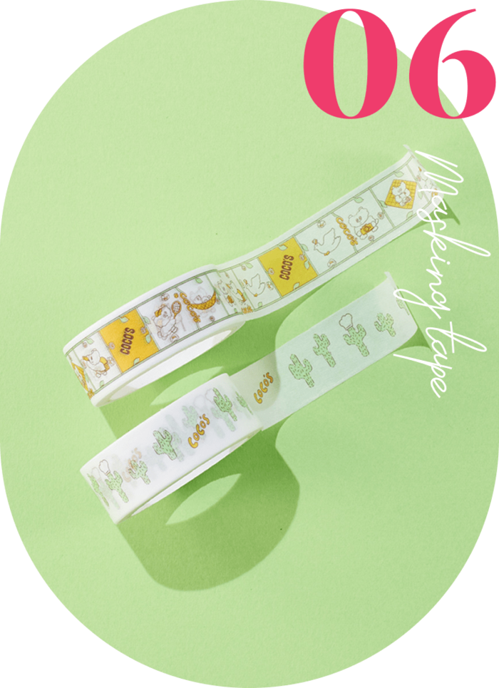 テイクアウト容器でおなじみのピクニック柄と、カリフォルニア発祥のココスならではのサボテン柄の2種類のマスキングテープです。