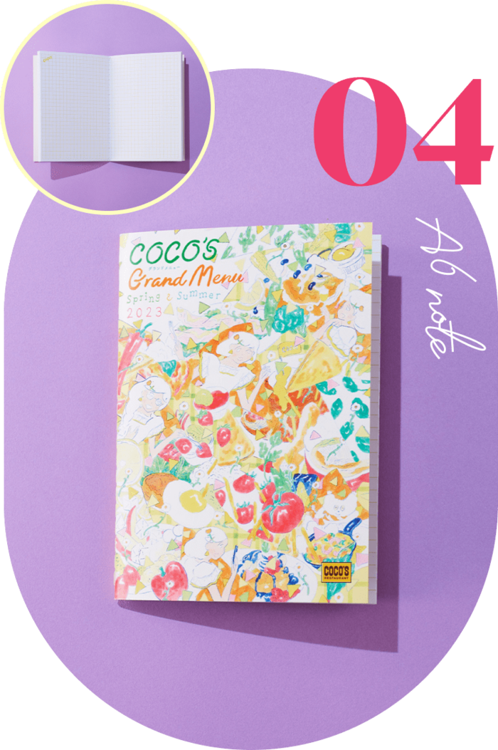 大好評のグランドメニューのイラストが表紙になったA6ノートです。中身は使いやすい5mm方眼なのもうれしいですね。