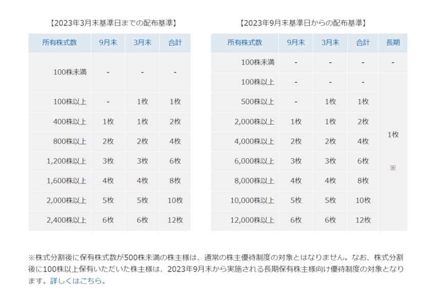 ただし、株式分割後に100株以上保有した株主の場合、2023年9月末から実施される長期保有株主様向け優待制度の対象となります。