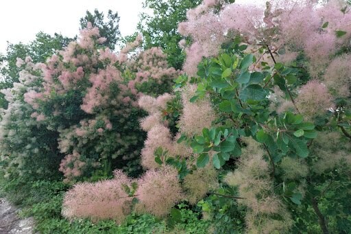 ふわふわした花穂が魅力のスモークツリー。樹高5メートル前後にまで育つ落葉小高木で、幻想的な花姿から「ケムリノキ」「カスミノキ」とも呼ばれています。
