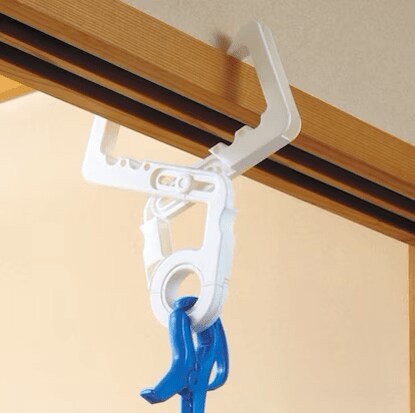 部屋干しするピンチなどをそのままドアの木枠に掛けると、細すぎてすぐにバランスを崩して落ちてしまいますよね。もしサーキュレーターで風を当てて乾燥を早めようとしても、このような状態では安定して乾かせません。