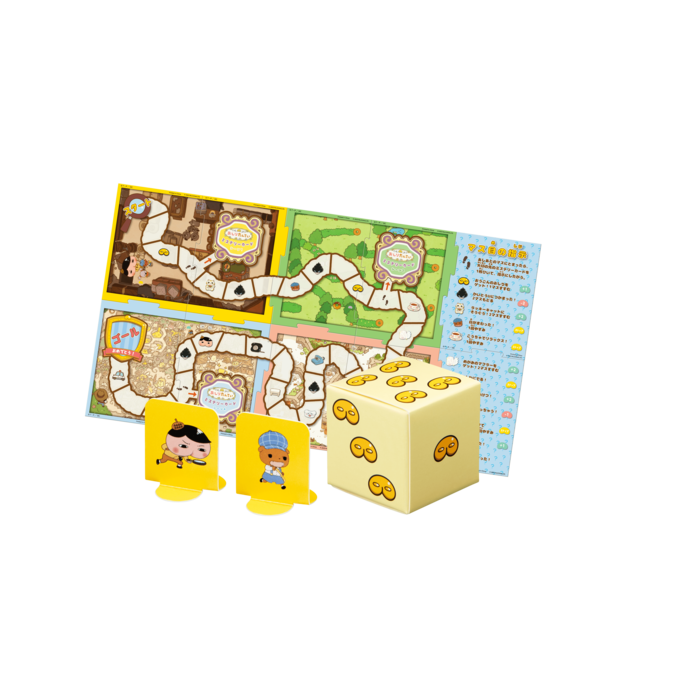 おしりたんていの決め台詞や指示が書かれたミステリーカード付きのすごろくです。
