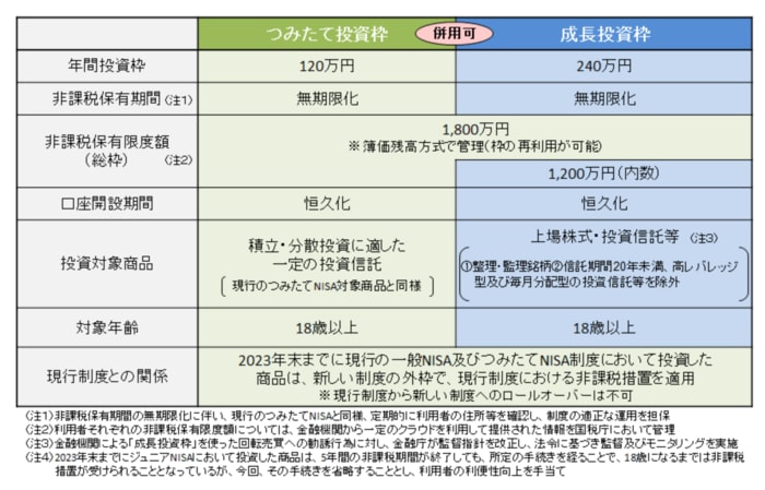 投資による利益が非課税となる制度で、2014年からスタートしています。現行制度の投資額上限や期限設定などNISAのルールが2024年から大きく変わります。