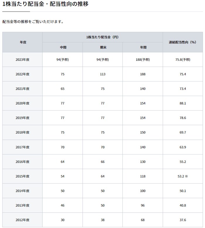 4. JTの配当推移を確認