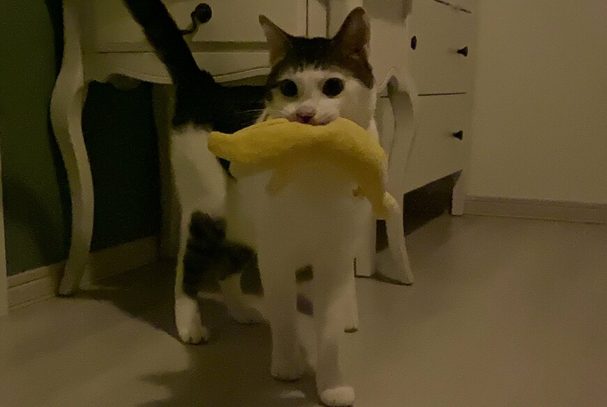 「真夜中のバナナ屋さん」になった猫ちゃん。すぐ近くにあるバナナを一生懸命に探すチャーミングな姿がTwitterで注目を集めています。