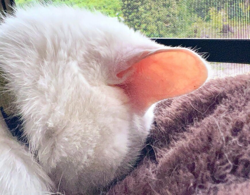 窓辺で気持ちよさそうに眠る猫ちゃん。なんとも愛らしい頭部の魅力に心を掴まれた人は多いようです。