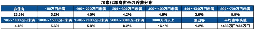 1.2 70歳代「ひとり世帯」の貯蓄額