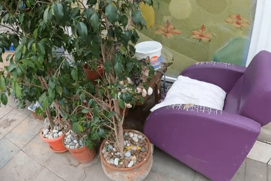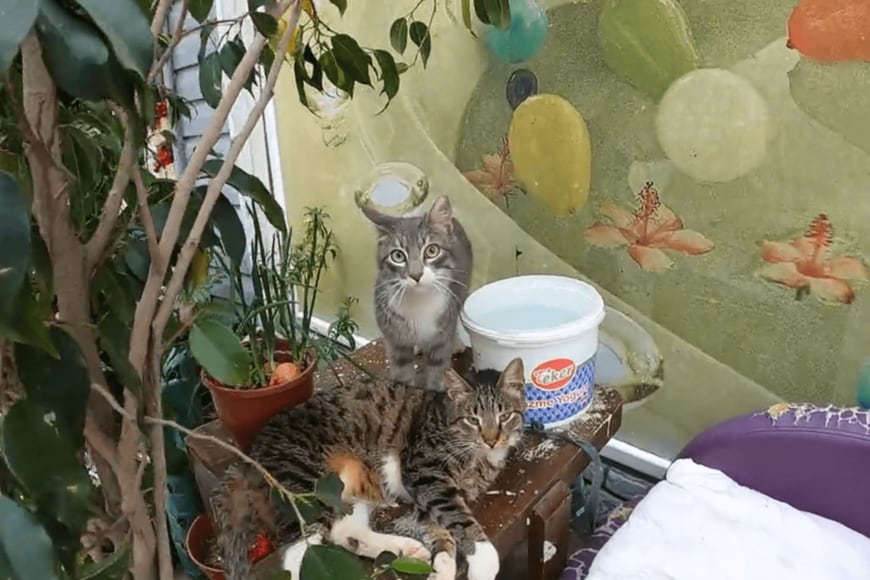 「植木で日陰を作った場所、そこはネコたちのための寛ぎコーナーでした」というコメントとともに投稿されたのは、30秒の動画でした。