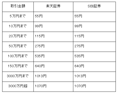 1取引あたりの手数料では、SBI証券と楽天証券で違いがありません。