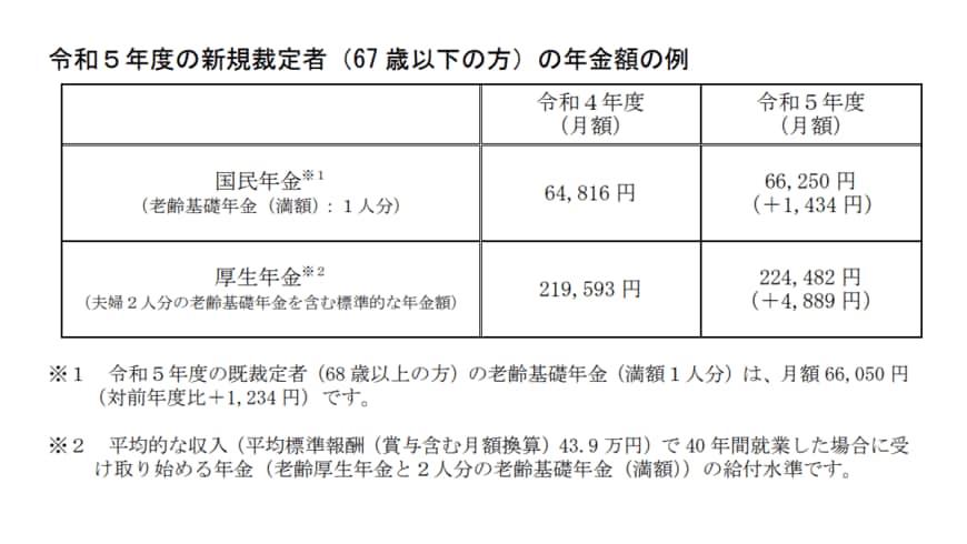 厚生労働省によると、2023年度の年金は以下のとおり決定されました。