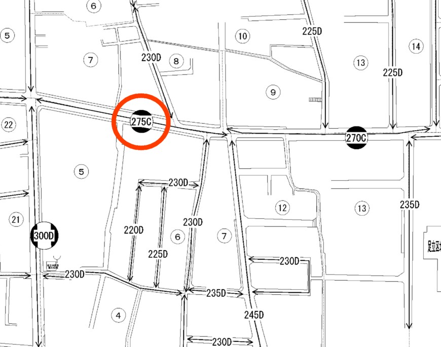 1㎡あたりの価格を1000円単位で表しているので、図2の「275C」の場合、1㎡あたりの路線価は「27万5000円」になります。
