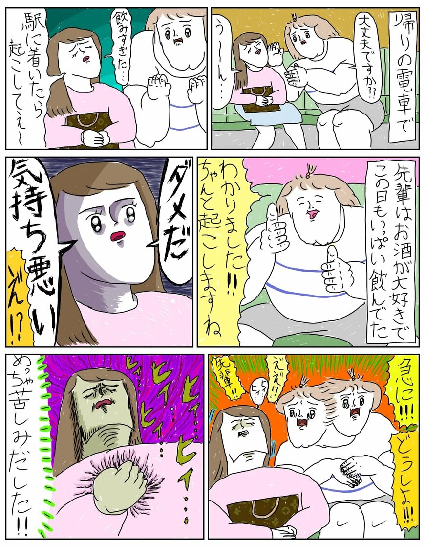 「先輩がすごかった漫画」というコメントとともに投稿されたのは、6ページに渡る漫画でした。