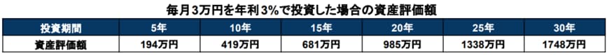 【積立投資】月3万円を年利3%で運用した場合をシミュレーション