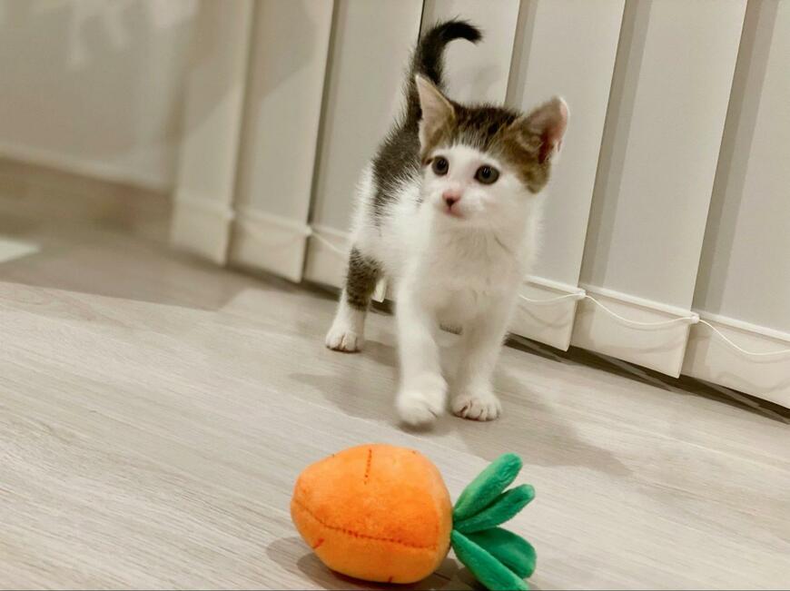 注目を浴びているのは元保護猫の「セロイ」くん。おもちゃ遊びが大好きで、甘えん坊な一面も持つ男の子です。