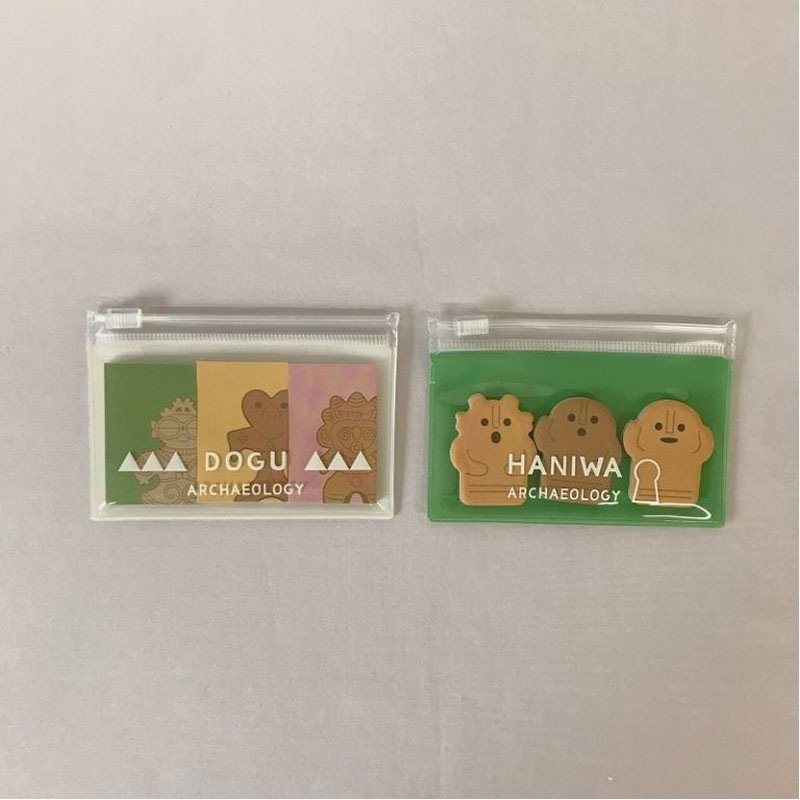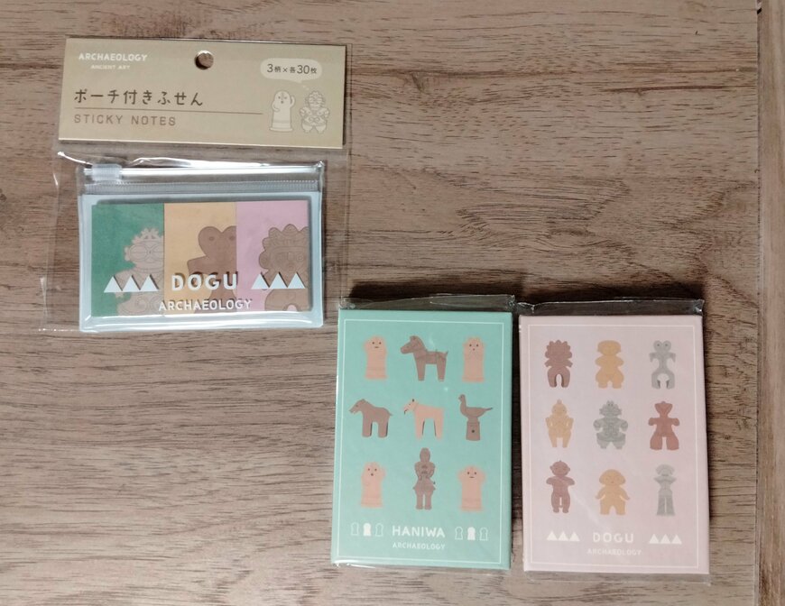 こちらはポーチ付きの「HD ポーチ付きふせん3柄×30枚」(JANコード4582547008320/税込110円)です。土偶と埴輪デザインのおしゃれな付箋が3種類ずつ入っています。