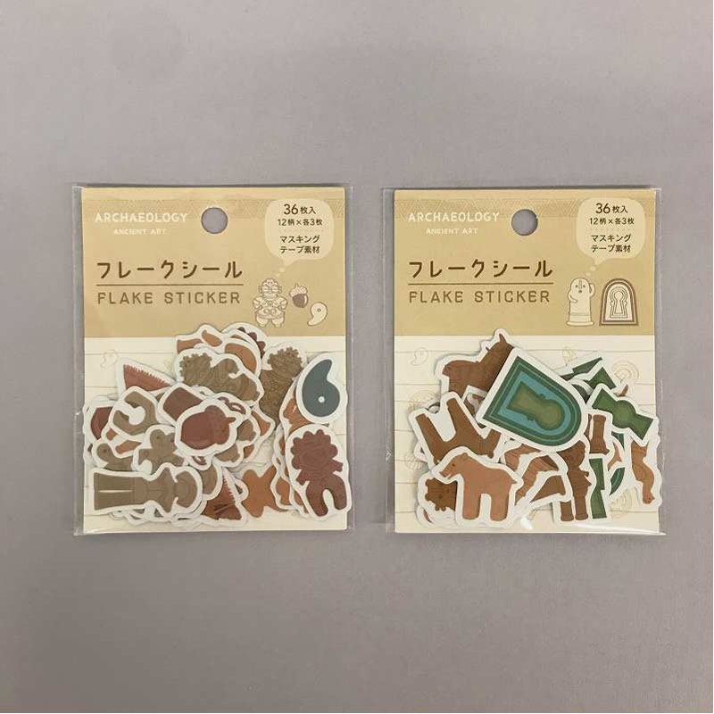 1つのパッケージに、12柄×3枚の36枚が入っています。古墳や竪穴式住居といった建造物や、埴輪や土偶といった埋蔵物のシールがそろっています。